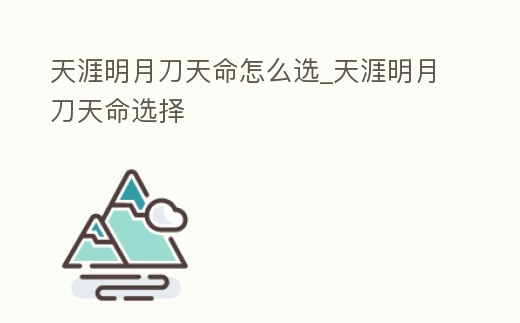 天涯明月刀天命怎么選_天涯明月刀天命選擇