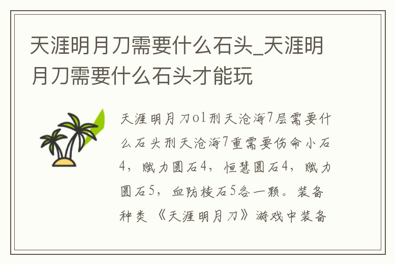 天涯明月刀需要什么石頭_天涯明月刀需要什么石頭才能玩
