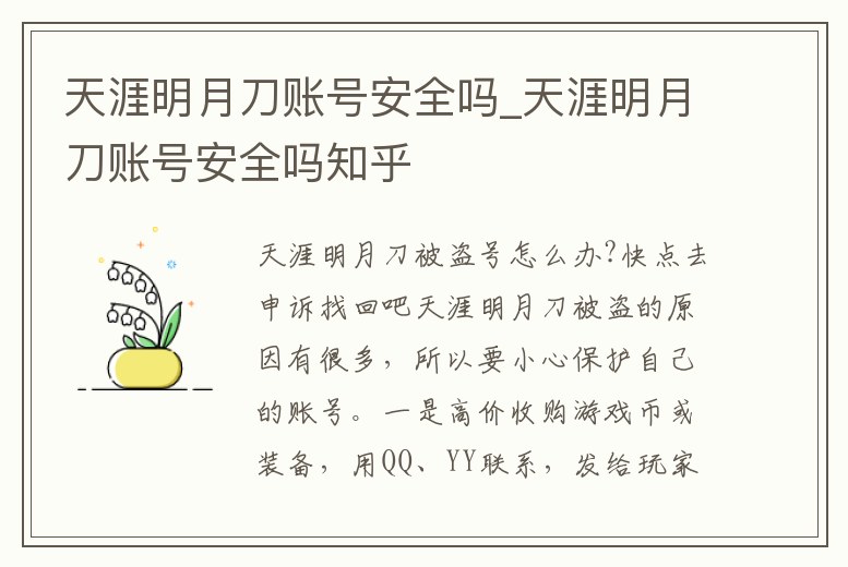 天涯明月刀賬號安全嗎_天涯明月刀賬號安全嗎知乎