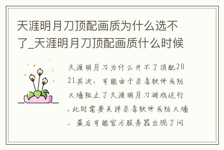 - 天涯明月刀頂配畫質(zhì)為什么選不了_天涯明月刀頂配畫質(zhì)什么時(shí)候開放