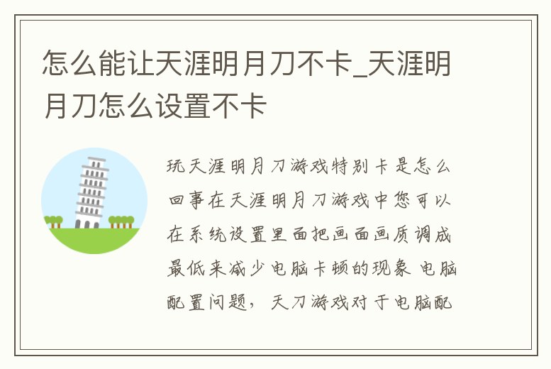 怎么能讓天涯明月刀不卡_天涯明月刀怎么設置不卡
