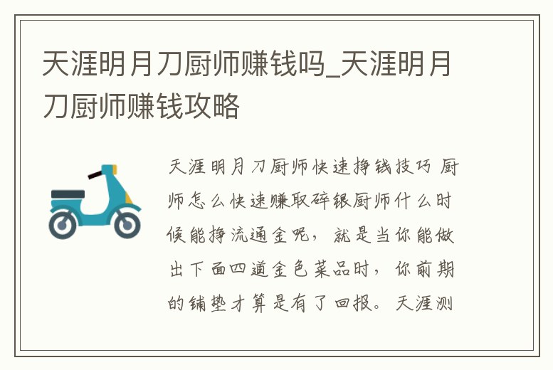 天涯明月刀廚師賺錢嗎_天涯明月刀廚師賺錢攻略