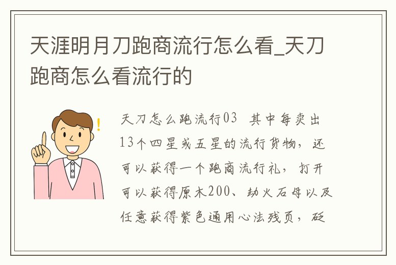 天涯明月刀跑商流行怎么看_天刀跑商怎么看流行的