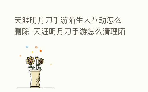 天涯明月刀手游陌生人互動怎么刪除_天涯明月刀手游怎么清理陌生人對話框
