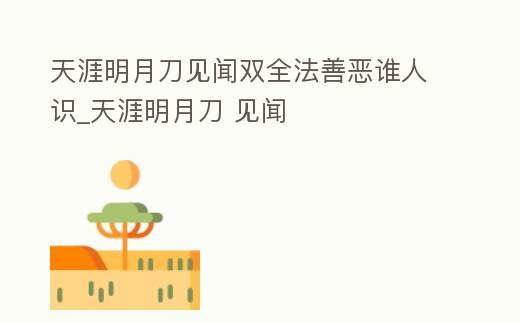 天涯明月刀見聞雙全法善惡誰人識_天涯明月刀 見聞