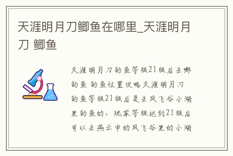天涯明月刀釣魚等級21級后去哪釣魚 釣魚位置攻略