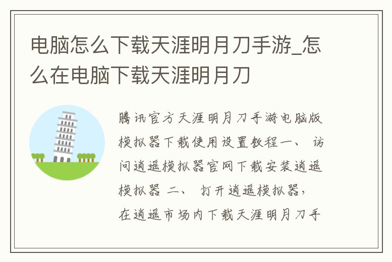 電腦怎么下載天涯明月刀手游_怎么在電腦下載天涯明月刀