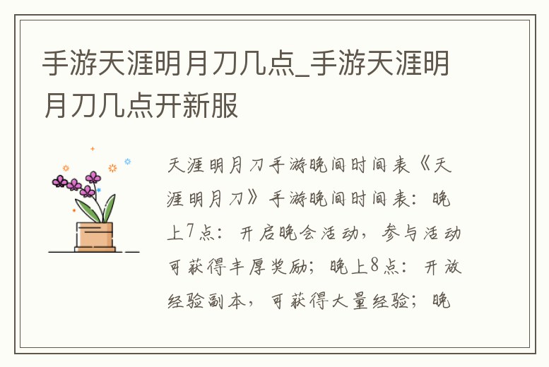 手游天涯明月刀幾點_手游天涯明月刀幾點開新服