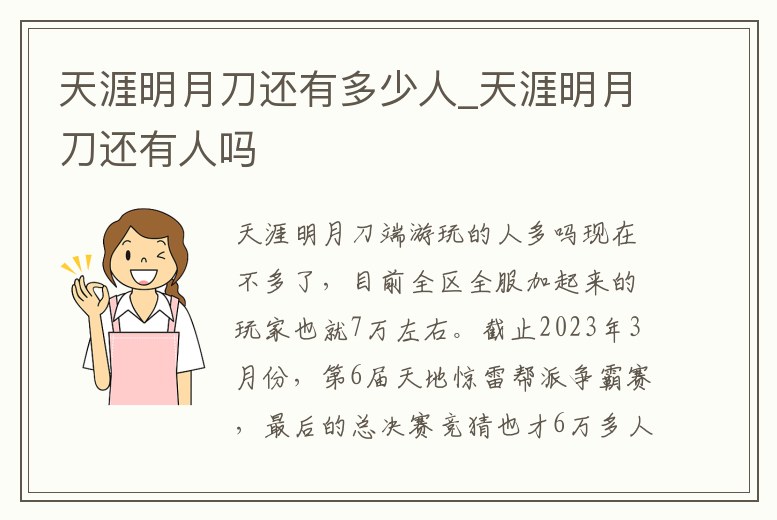 天涯明月刀還有多少人_天涯明月刀還有人嗎