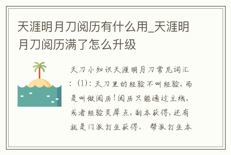 天涯明月刀閱歷有什么用_天涯明月刀閱歷滿了怎么升級