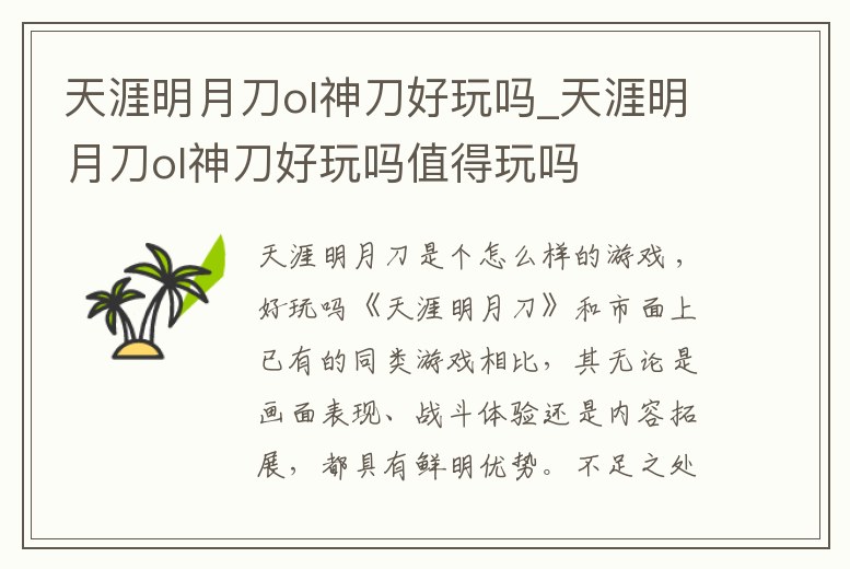 天涯明月刀ol神刀好玩嗎_天涯明月刀ol神刀好玩嗎值得玩嗎