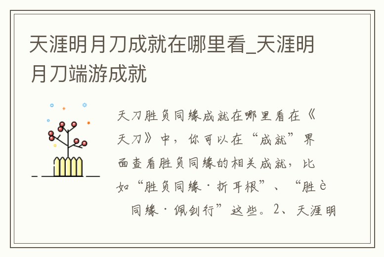 在《天刀》中,你可以在“成就”界面查看勝負同緣的相關成就,比如“勝負同緣·折耳根”、“勝負同緣·佩劍行”這些。