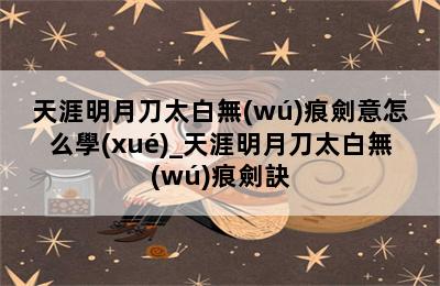 - 天涯明月刀太白無(wú)痕劍意怎么學(xué)_天涯明月刀太白無(wú)痕劍訣