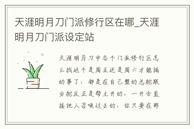 天涯明月刀門派修行區(qū)在哪_天涯明月刀門派設(shè)定站