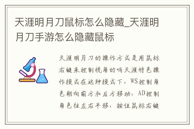 天涯明月刀鼠標(biāo)怎么隱藏_天涯明月刀手游怎么隱藏鼠標(biāo)