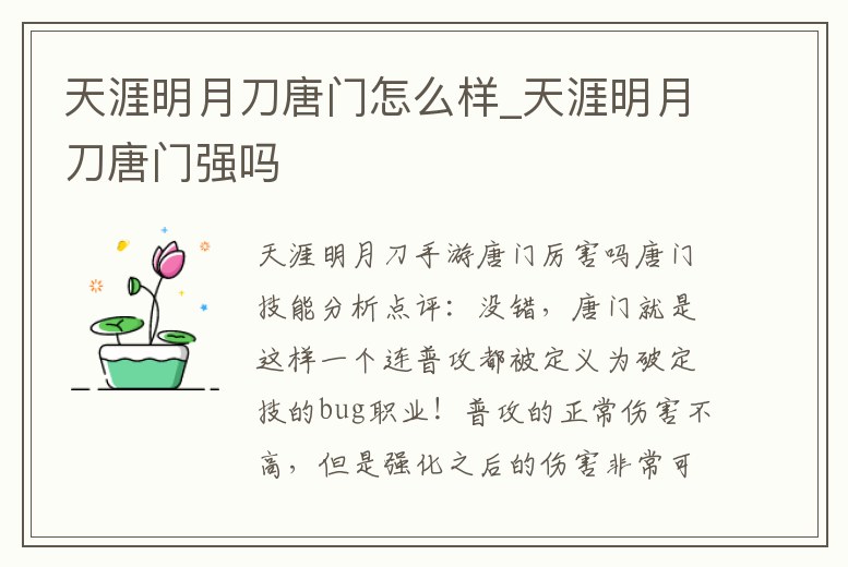 天涯明月刀唐門怎么樣_天涯明月刀唐門強(qiáng)嗎