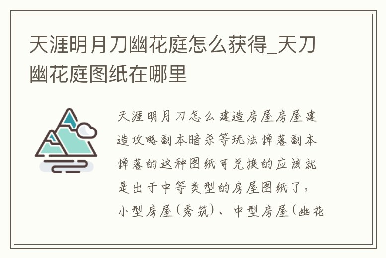 天涯明月刀幽花庭怎么獲得_天刀幽花庭圖紙在哪里