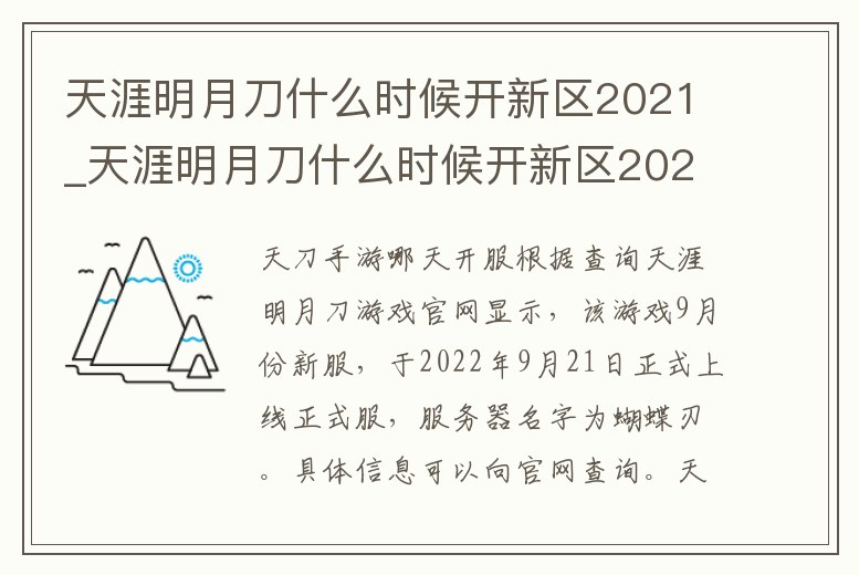 天涯明月刀什么時候開新區(qū)2021_天涯明月刀什么時候開新區(qū)2023