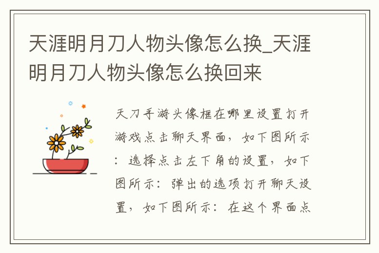 - 天涯明月刀人物頭像怎么換_天涯明月刀人物頭像怎么換回來(lái)