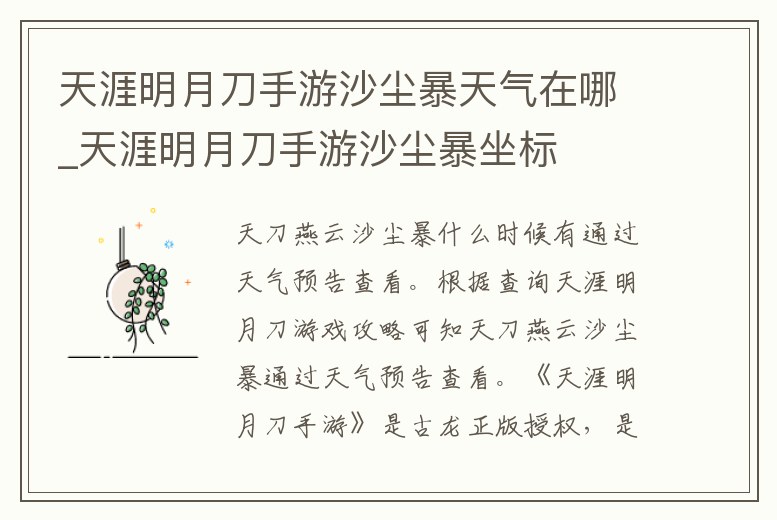 天涯明月刀手游沙塵暴天氣在哪_天涯明月刀手游沙塵暴坐標