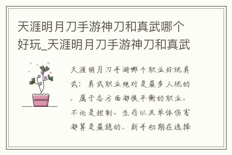 天涯明月刀手游神刀和真武哪個好玩_天涯明月刀手游神刀和真武哪個厲害