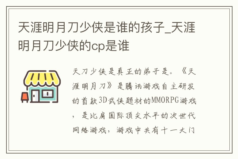 天涯明月刀少俠是誰的孩子_天涯明月刀少俠的cp是誰