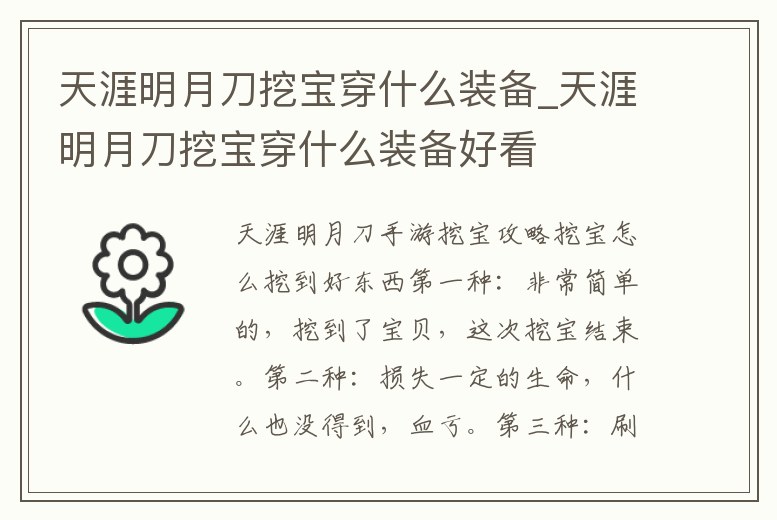 天涯明月刀挖寶穿什么裝備_天涯明月刀挖寶穿什么裝備好看