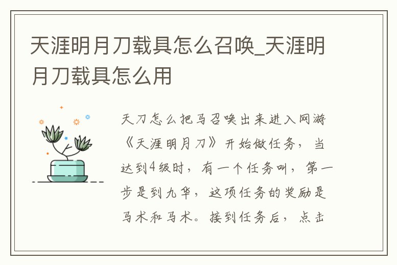 天涯明月刀載具怎么召喚_天涯明月刀載具怎么用