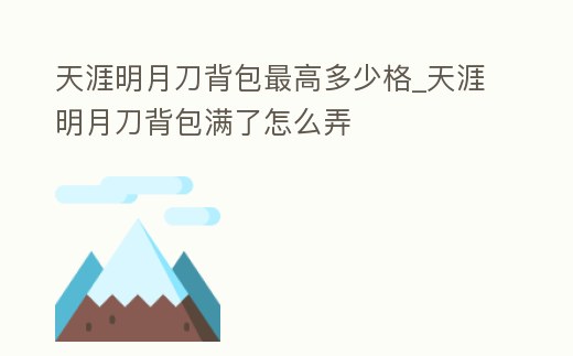 天涯明月刀背包最高多少格_天涯明月刀背包滿了怎么弄