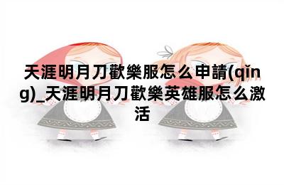 天涯明月刀歡樂服怎么申請(qǐng)_天涯明月刀歡樂英雄服怎么激活