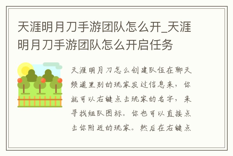 天涯明月刀手游團(tuán)隊(duì)怎么開_天涯明月刀手游團(tuán)隊(duì)怎么開啟任務(wù)