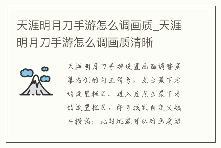 天涯明月刀手游怎么調畫質_天涯明月刀手游怎么調畫質清晰