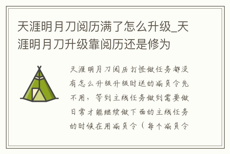 天涯明月刀閱歷滿了怎么升級_天涯明月刀升級靠閱歷還是修為