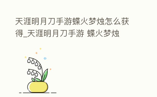 天涯明月刀手游蝶火夢燭怎么獲得_天涯明月刀手游 蝶火夢燭