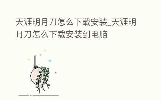天涯明月刀怎么下載安裝_天涯明月刀怎么下載安裝到電腦