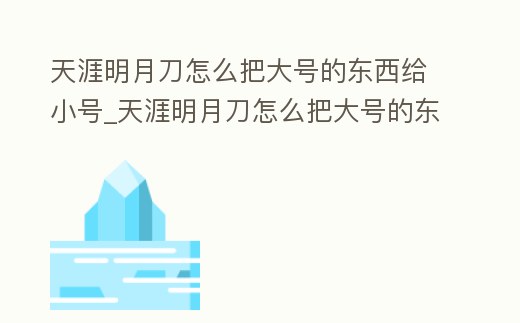 天涯明月刀怎么把大號的東西給小號_天涯明月刀怎么把大號的東西給小號玩