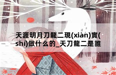 - 天涯明月刀龍二現(xiàn)實(shí)做什么的_天刀龍二是誰