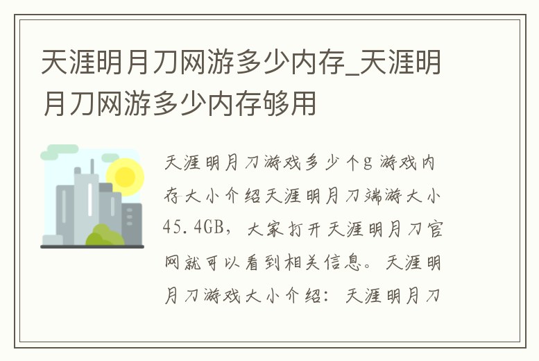 天涯明月刀網游多少內存_天涯明月刀網游多少內存夠用