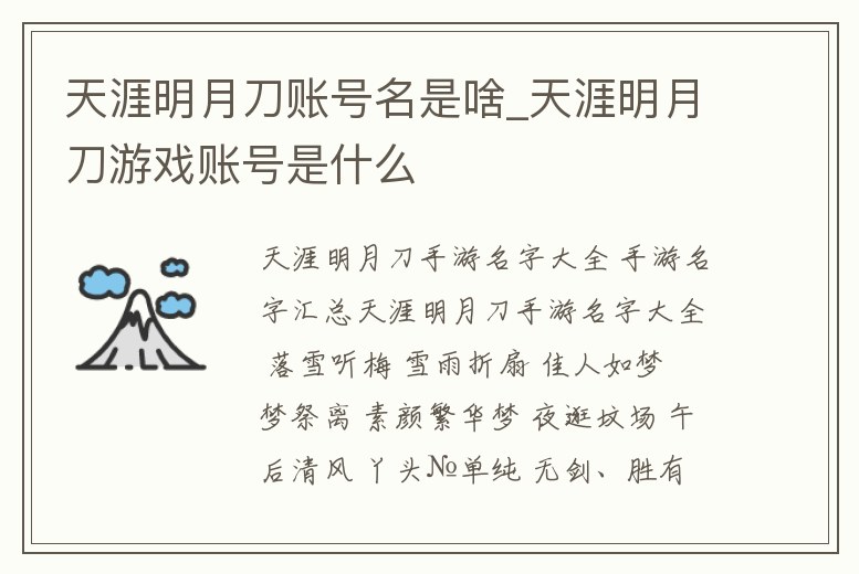 - 天涯明月刀賬號(hào)名是啥_天涯明月刀游戲賬號(hào)是什么