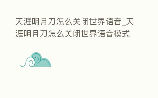 天涯明月刀怎么關閉世界語音_天涯明月刀怎么關閉世界語音模式