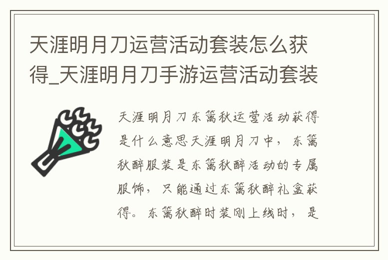 天涯明月刀東籬秋運營活動獲得是什么意思