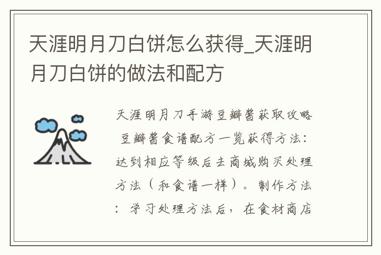 天涯明月刀白餅怎么獲得_天涯明月刀白餅的做法和配方