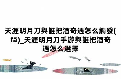 天涯明月刀與誰把酒奇遇怎么觸發(fā)_天涯明月刀手游與誰把酒奇遇怎么選擇