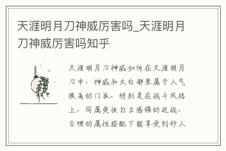 天涯明月刀神威厲害嗎_天涯明月刀神威厲害嗎知乎
