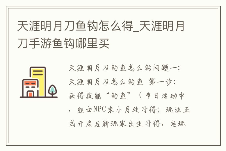 天涯明月刀魚鉤怎么得_天涯明月刀手游魚鉤哪里買