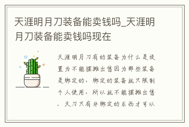 天涯明月刀裝備能賣錢嗎_天涯明月刀裝備能賣錢嗎現在