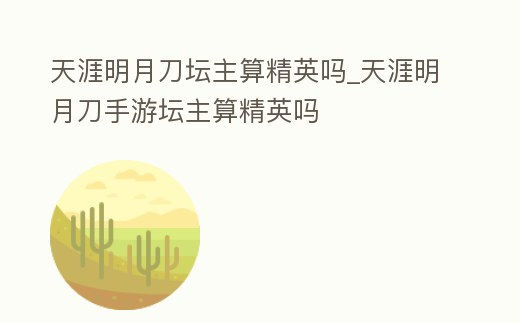 天涯明月刀壇主算精英嗎_天涯明月刀手游壇主算精英嗎