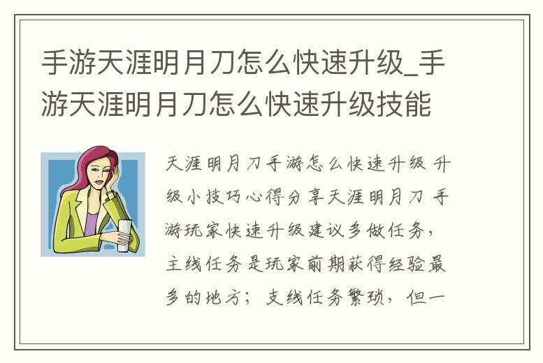 手游天涯明月刀怎么快速升級_手游天涯明月刀怎么快速升級技能