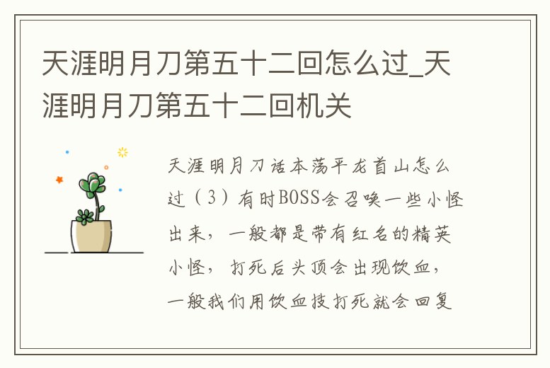 天涯明月刀第五十二回怎么過_天涯明月刀第五十二回機關