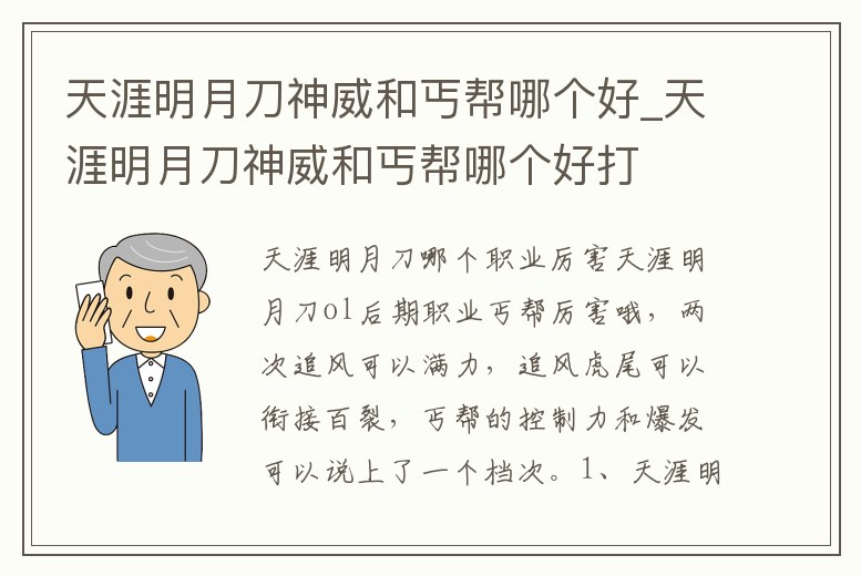 天涯明月刀神威和丐幫哪個好_天涯明月刀神威和丐幫哪個好打